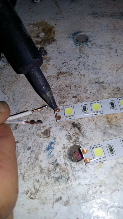 1. Abrir plafon original de la luz trasera. Como la alimentación eléctrica la saqué de este plafón es necesario sacarlo y además desde ese orificio en el techo pasé los cables por dentro del techo. 2. Soldar las tiras de led a un cable. 3. Con la ayuda de un pasacable, pasar el cable por el orificio del plafón hasta el parante trasero (hay que abrir el plástico del parante trasero que está colocado a presión ) 4. Una vez pasado el cable, tomar la alimentación del plafón del techo. En mi caso no soldé los cables, sólo los empalmé a los terminales de metal