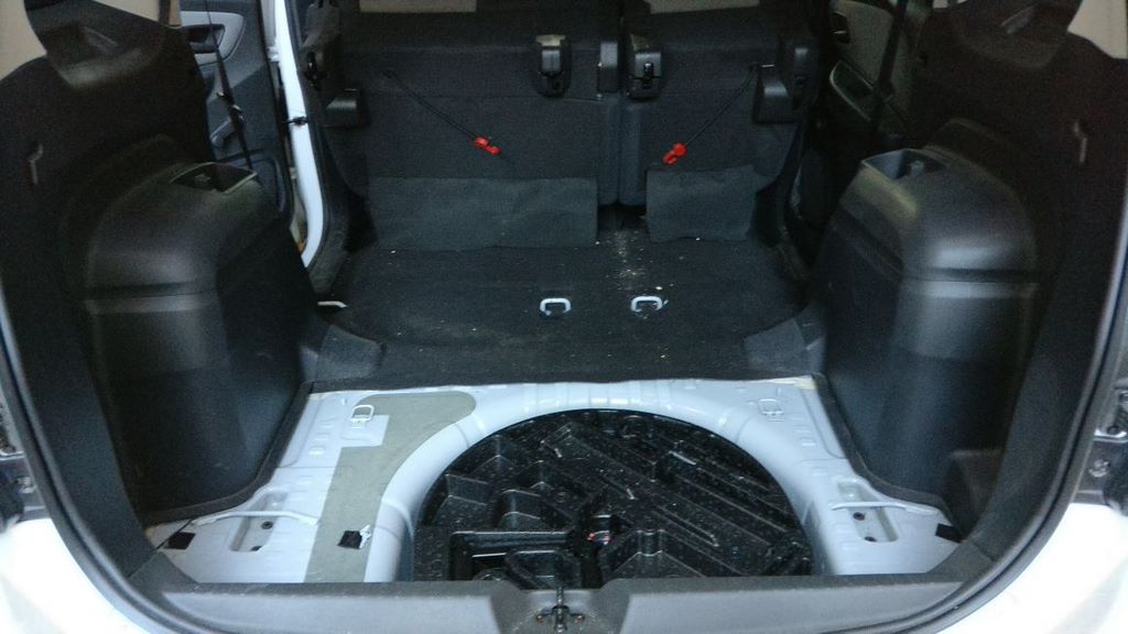 9. Ya puesto los paneles y los cinturones hay que montar la tercera fila. Muy sencillo. Los asientos tienen una pata con resortes que hace sencillo rebatirlos. Esta pata, tiene un perno y un orificio para atornillar un tornillo torx. En las imagenes, se muestran donde se insertan las patas de la tercera fila.
