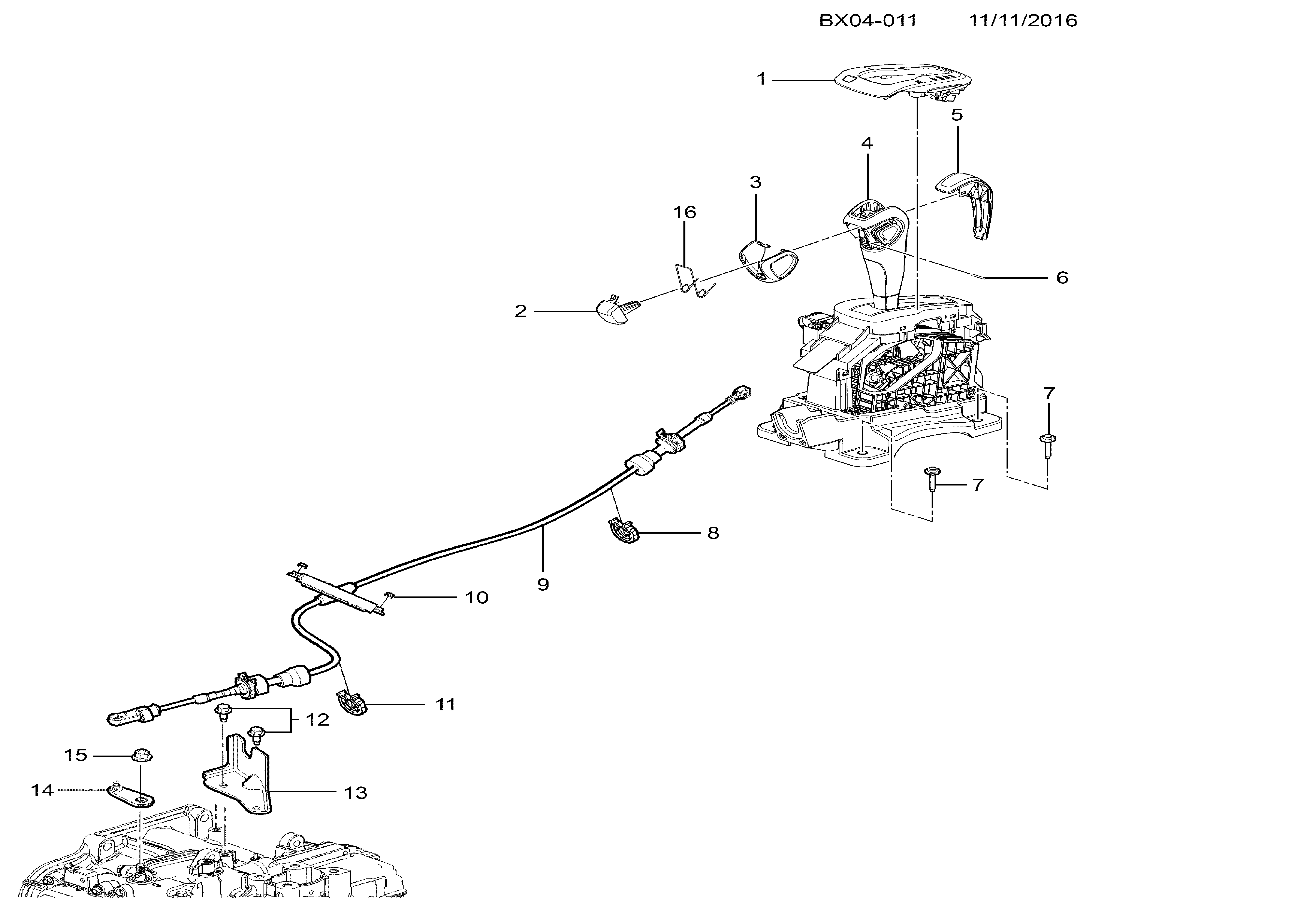 9 94551360 CABO, ALAVANCA SELEÇÃO FAIXA TRANSMISSÃO AUTOMÁTICA(SEM TRAVA SECUNDÁRIA)(PARA SEGUNDO DESENHO CONSULTE 42594701)(INCLUI 8, 11)